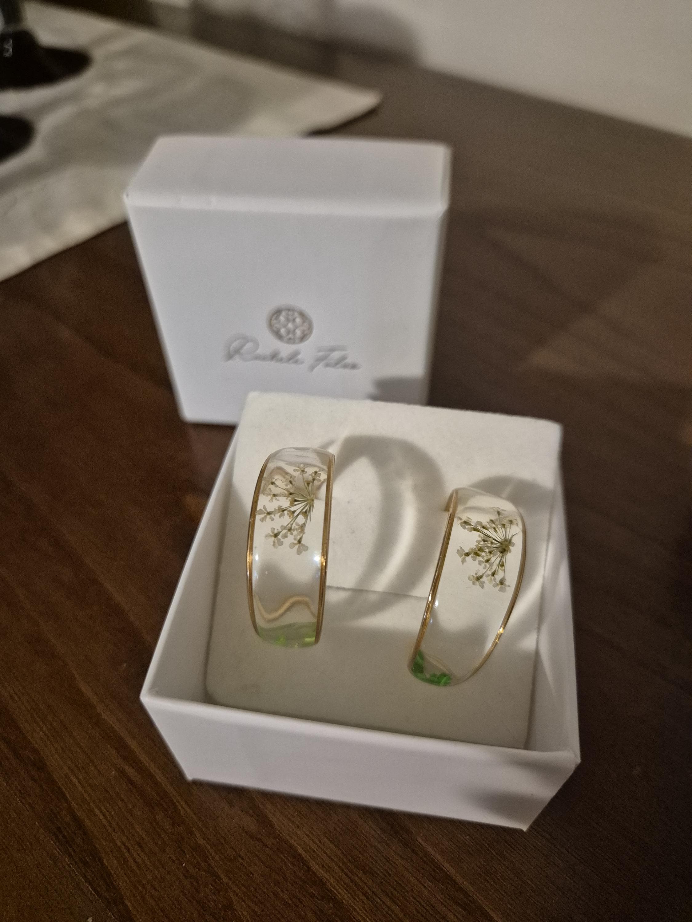 Dried flower hoop earrings in resin and silver
